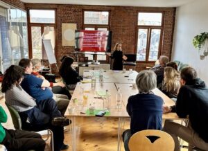 Na een uitgebreide lunch volgde een vorming rond interculturele communicatie en anderstaligheid. Activiteiten organiseren voor mensen met diverse achtergronden en talen is niet altijd evident. Tegelijk toont het verhaal van Claire hoe krachtig dit werk kan zijn: een laaggeletterde, anderstalige man die via het project ‘voorleesverhalen’ een eigen verhaal schrijft voor zijn kind. Het is een mooi voorbeeld van hoe ver we samen al staan.